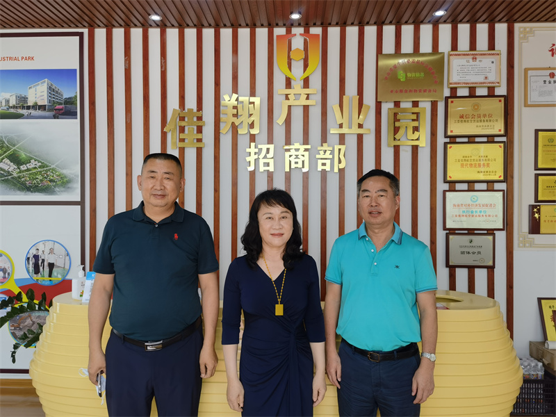 2021年6月8日,海南農墾商貿物流產業集團有限公司黨委書記、董事長林興、海南省冷鏈物流協會會長王鴻駿等一行蒞臨三亞佳翔物流產業小鎮參觀調研。